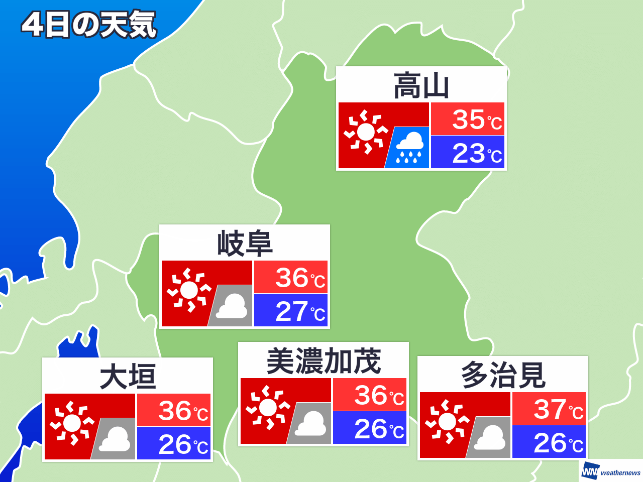 岐阜(岐阜県)の実況天気(2023年08月04日)