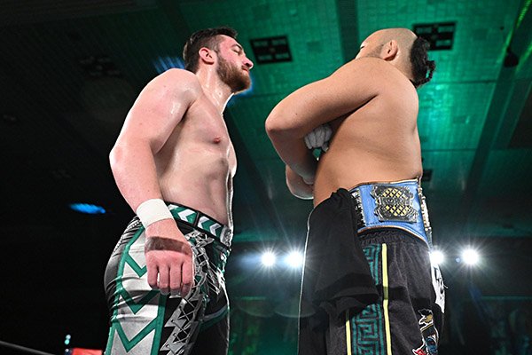 第4試合はBブロック公式戦、ボルチン・オレッグ(2勝4敗)がIWGP GLOBAL王者デビッド・フィンレー(3勝3敗)と激突。序盤はオレッグがパワーを見せつける。だが、フィンレーは悪のインサイドワークで切り崩しにかかると、終盤にはオレッグのお株を奪うカミカゼを炸裂。オレッグもカミカゼを食らわせ、追撃の一発を狙うが、切り抜けたフィンレーは一気にパワーボム。そしてオーバーキルで葬り、圧巻の強さを見せた。